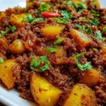 Aloo Keema ist ein klassisches indisches Gericht, das Hackfleisch und Kartoffeln in einer herzhaften Sauce kombiniert. Es liefert ein köstliches Erlebnis voller Aromen und ist ideal für gesellige Abende.