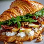 Ein köstliches Croissant-Sandwich mit fruchtigen Äpfeln und cremigem Ziegenkäse, ideal für Brunch oder einen Snack.