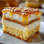 Ein köstlicher deutscher Kuchen mit einer zarten Vanillecreme-Füllung und einer knusprigen Mandel-Honig-Kruste.