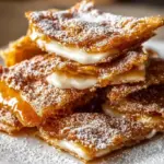 Ein köstliches Dessert, das knusprige Salzstangen in goldener Karamellschicht verführt und mit einer Zimt-Zucker-Mischung bestreut wird.