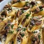 Zarte Muschelnudeln gefüllt mit einer cremigen Ricotta-Champignon-Mischung, umhüllt von köstlicher Alfredo-Sauce.