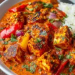 A delicious and aromatic Halloumi Tikka Masala featuring crispy Halloumi cubes in a rich tomato and spice sauce, perfect for any occasion.