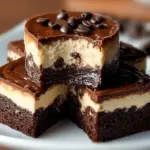 Süße Kaffeekäsekuchen-Brownies mit Zartbitterschokolade und einer cremigen Käsekuchen-Schicht, perfekt für Kaffeeliebhaber.