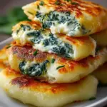 Leckere Kartoffeltaschen gefüllt mit cremigem Frischkäse und frisch gedünstetem Spinat, perfekt zum Braten oder für das Ofenbacken.