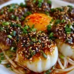 - Serviere das Gericht heiß, garniert mit frischem Sesam und gehackten Frühlingszwiebeln.