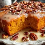 Ein saftiger Kuchen aus pürierten Süßkartoffeln und Honig, verfeinert mit Pekannüssen und einer zarten Zuckerglasur.